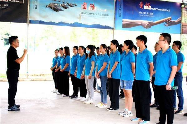 经过我们意气风发的拓展教练对我们的队员进行破冰活动后,接下来就是我们成员分队,领队旗、起队名。